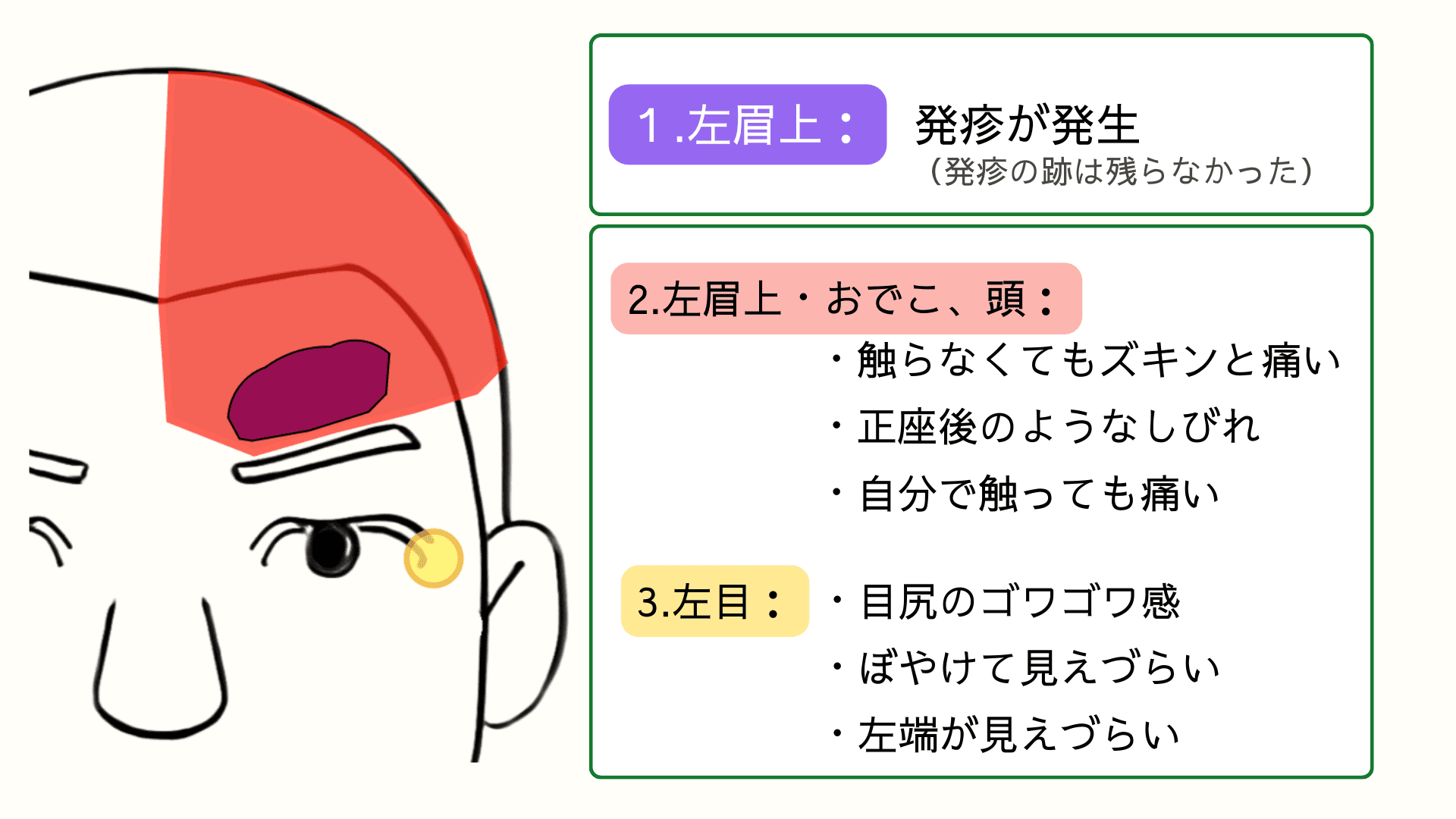 ・皮膚科にて「帯状疱疹」と診断される。